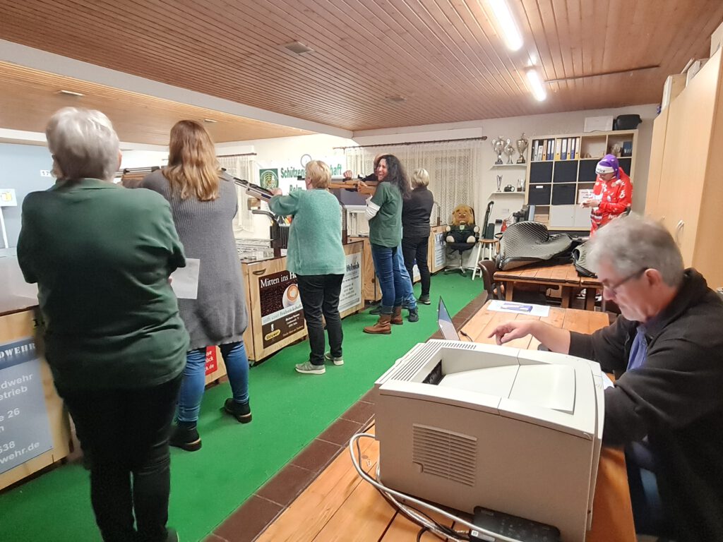 Neben dem obligatorischen Luftgewehr-Schießen sorgte auch ein Bingo-Spiel für Heiterkeit und ausgelassene Stimmung. Eine Teilnehmerin aus Belm hatte das glücklichste Händchen beim Glücksschießen, unsere Piesberger Schützenschwestern konnten den Wanderpokal verteidigen und der Sportschützen-Wanderpokal konnte einer Schützin aus Icker überreicht werden.